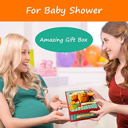 💕 DURABLE, SAFE & MACHINE WASHABLE: Our cloth books are designed to outlast even the roughest toddler! Handcrafted from soft polyester, this soft book is absolutely non-toxic and safe for your infant. The stitching is strong for extra durability. The handle makes it easy to attach to a stroller or car seat. And it holds up in the wash.