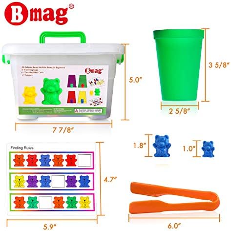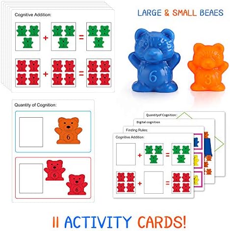 【DEVELOP COGNITIVE SKILLS】By sorting different color bears your children can enhance their Motor-Skills and the ability to identify colors. Each card matches a text of story or Math problem, such as FINDING RULES, QUANTITY COGNITION, ADDITION COGNITION, MODEL BUILDING, During the play your children’s imagination, critical thinking ability, logical thinking ability, memory skill will be greatly improved. The fun tasks increase an attention span for long-term planning