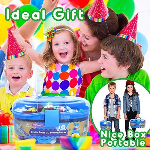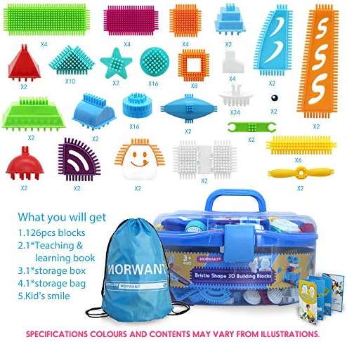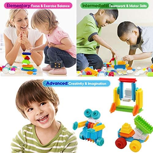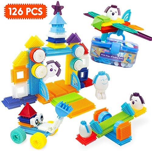 【Portable And Reusable Carrying Case】Portable And Reusable Carrying Case: This bristle building set include 126pcs in assorted sizes and vibrant colors for hours of imaginative play. Fit everything in the case when your little one is done building. Easy to store and carry.