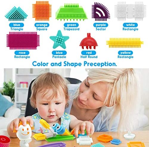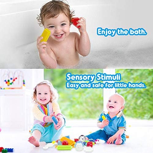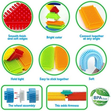 【Sensory Learning】Uplifting colors and different textures. Perfect first bristle shape building blocks or can be combined with other collections to entertain for hours fun.