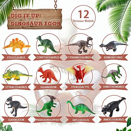 ♚【DISCOVER 12 UNIQUE DINOSAUR MODELS】 Feel like a real paleontologist excavating up unique toy dinosaurs from the dino eggs. Find a T-rex, Dilophosaurus, Ankylosaurus and much more! Once dug up, find the appropriate card describing the history and characteristics of the dinosaur.