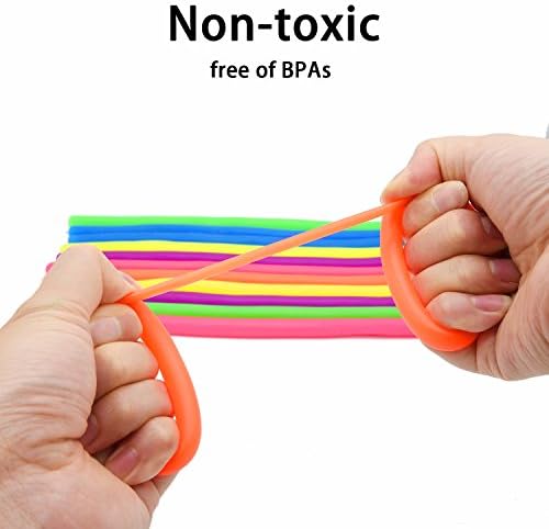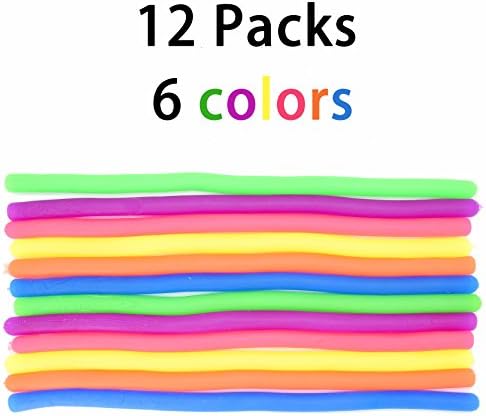 Material, Size and Package- These sensory toys are made with high-quality custom formulated materials, they are hypoallergenic, nontoxic, and free of BPAs, phthalates and latex. Safe for kids and adults. This pack contains 12 Stretchy String in 6 different colors,each of it is approx 11”.