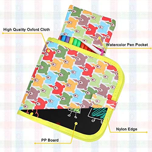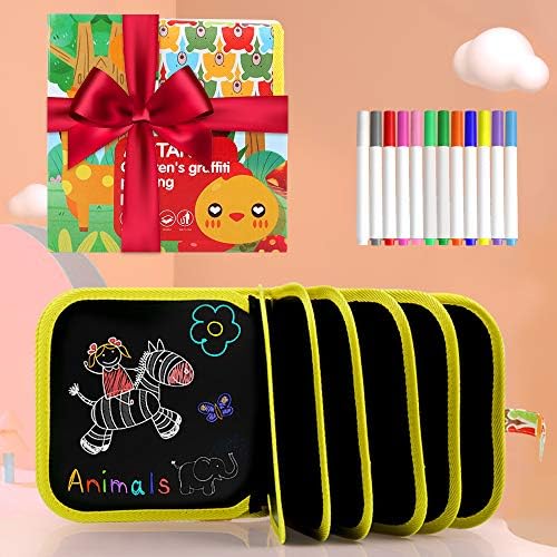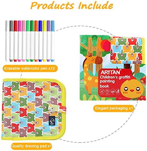 Creative Drawing Book Toys! The Aritan drawing book is made of high-quality polyester material, which is non-toxic. It is presented with 12 watercolor pens with bright colors and no dust, which is safe enough for children. As long as you wipe it with a wet paper towel, the drawing book on it will disappear and you can reuse it! Your child can draw beautiful patterns on the drawing book to exercise his creativity and sense of color! With a size of only about 8 inches, the book is easy to carry around and can be used in a car, on a plane or on a trip. It is the best birthday gift and party gift for children!