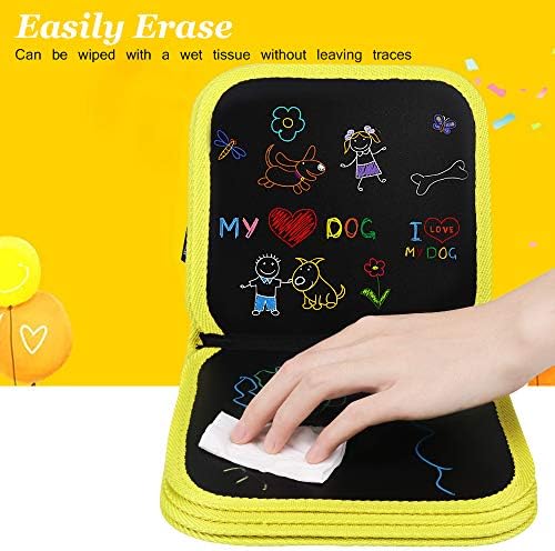 【SAFE&REUSABLE】 Made of high quality PP material. Durable, lightweight and easy to use. It is safe for children. The drawing book is equipped with 12 special dust-free watercolor pens, which are colorful and can be easily wiped off with a wet tissue without any traces. Cultivate your child’s creativity and imagination!(Note: you need to use wet wipes or wet rags to erase the handwriting)