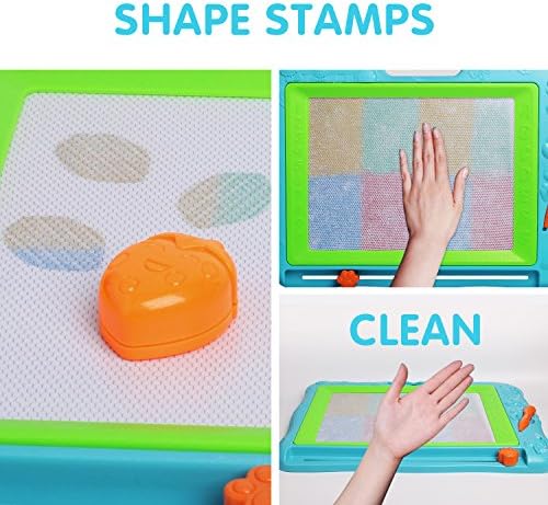 Big Size Board Design】The board design size 18*13inch, drawing area up to 11.5*8.5inch. This ensure that your child has a large enough area to draw(Even 2 children). The magna doodle board will helpful for your children to improve their intelligence, imagination and drawing skills