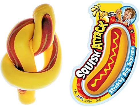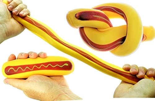 1 Unit Individually Packed of The Original Super Stretchy HOT DOG Toy for Kids. Sand Filled Squish Yum Buh Nay Nay. Very Durable we Invented This Toy!!. You can stretch far like the Stretchy Banana. Simply pat to restore original form.