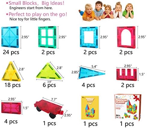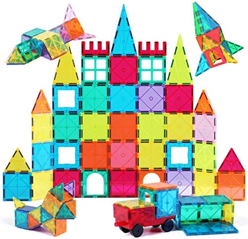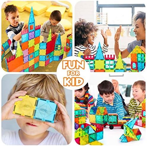 【Educational STEM toys】: LEARNING BY PLAYING. By playing this magnetic building tiles, children can acquire strong sense of color, geometrical shapes including 3D forms numbers counts, magnetic polarities & architectural design at early age. Perfect educational presents for kids boys girls 3 4 5 6 7 8 9 10 11 12 years old and