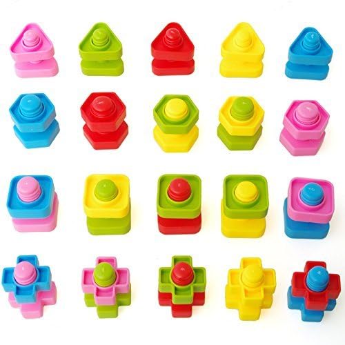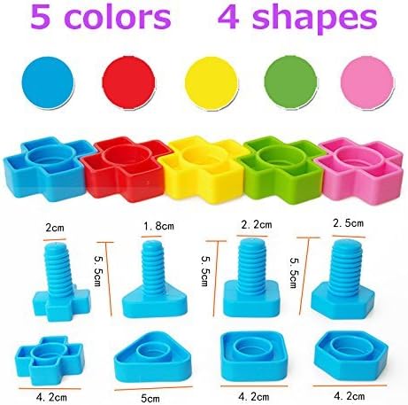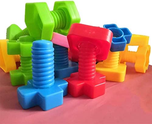 STEM ACTIVITIES: 40 Pcs Complete Plastic Nuts and Bolts Set – – Includes 4 different shapes & 5 different colors for eachshape.
