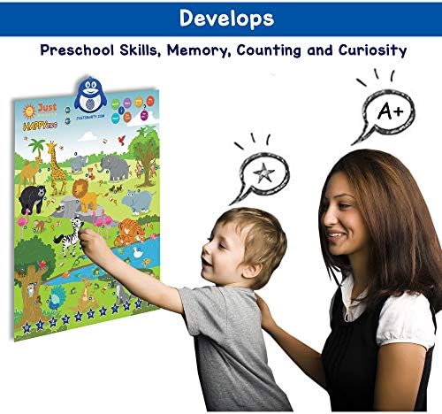 Toys and Games for Autistic Children: Just Smarty Interactive Happy Zoo Poster, Preschool Animal Learning Toy for 3, 4, 5, 6 Year Old Boys and Girls. Toddler Educational Activities with Music, Playing, Singing for Daycare, Kindergarten