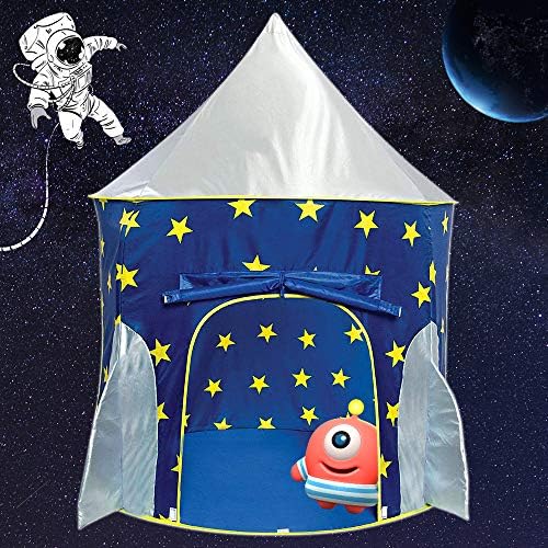 【Safe to Play and Easy to Clean】Parents or guardians can keep a watch on their kids through the mesh windows outside the ship tent. With durable cloth and sturdy poles, our baby tent is safe to play inside. And you can use a wet cloth and mild soap to clean it. These astronaut toys for toddlers and kids are relaxing toys for 3-5 year old boys and girls
