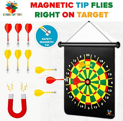 video games. Get them on their feet having a blast with the Corona Gift Toys magnetic dart board! This isn’t just any dart board for kids; it packs