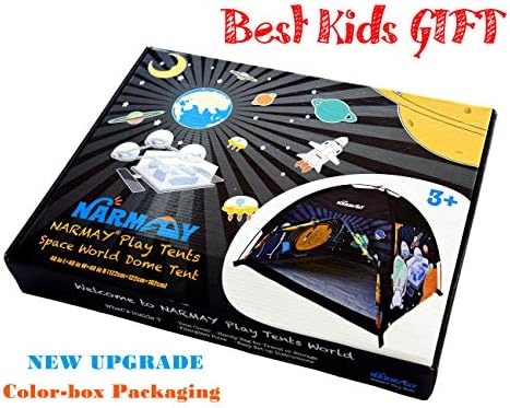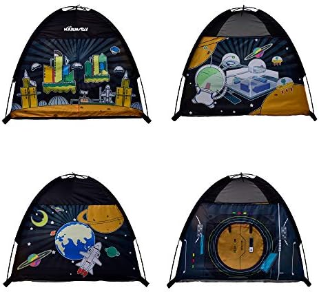 The Space World Dome Tent includes velcro front door closure and a tunnel port with roll down flap. Compatible with a variety of NARMAY tunnels and tents so children can build a kid-sized play village.