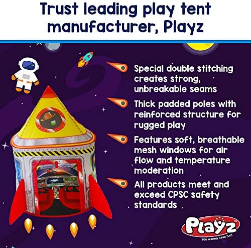 Playz Space Rocket Play Tent Set provides instant joy, unlimited fun and hours of adventurous play. Great cool kids toys, toddler boy toys and toddler girl toys.