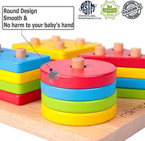 🔵 [ Exquisite Craftsmanship for the Sensory Toy ] Rolimate early childhood development toy wooden block have smooth rubber wood surface and great touch feeling after many polishing processes, can prevent your 2 3 4 years old child from bumping and hurting while playing these wooden puzzle toys