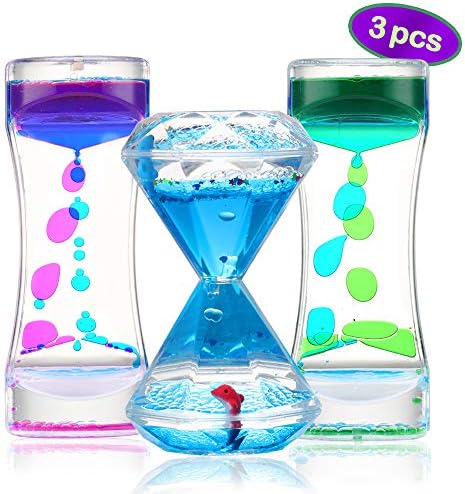 PERFECT FOR KIDS & ADULTS- It is a complete safety sensory toy for babies, kids, and adults. Each liquid timer contains two colors inside. Lasts more than 3 Minutes! Then Flip Over and Restart. This cool fidget sensory liquid timer motion bubbler is a great gift for Christmas, birthdays, or any other holidays. With an ASTM F963 International Toy Standard Certificate, these toys are child safe and worry free.