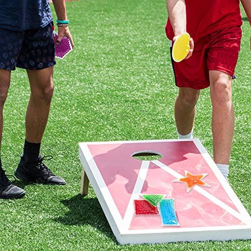 These cornhole bags are made with high-quality materials, filled water gel beads inside that are hypoallergenic, non-toxic, no chemical scent, waterproof and free of BPAs, certificated by ASTM F963, CPC, and CPSIA. With Plastic transpirate bags, it is very easy to wipe and clean. The bags are sealed using hot-melt lamination making it very durable.