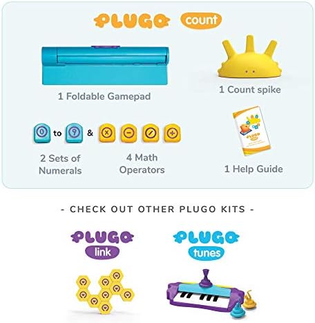 ► IN THE BOX – Plugo Count comes with 1 foldable gamepad, 1 Count Spike, 4 arithmetic operators (+ – x/), and 2 sets of digits 0-9. No Bluetooth and no electronics. The gamepad and Count Spike connect through embedded magnets. A help guide with step-by-step instructions is also included.