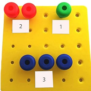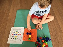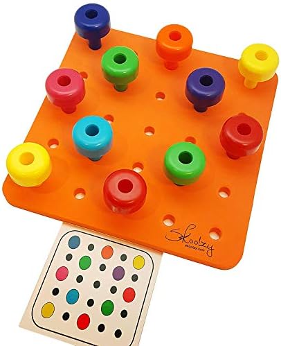 TODDLER EDUCATIONAL TOYS: Great for building fine motor skills for toddlers, hand-eye coordination, develop and strengthen visual perception skills, visual motor coordination & making patterns! Occupational therapy gifts and educational games for children. Use the toddler activities ebook for examples. Toddler learning activities and manipulatives for preschoolers. 30 Pegs in 9 colors (2″x1.25″ each), 1 Large foam pegboard (8″ inch square), 1 Double-sided Pattern Card with 8 patterns.