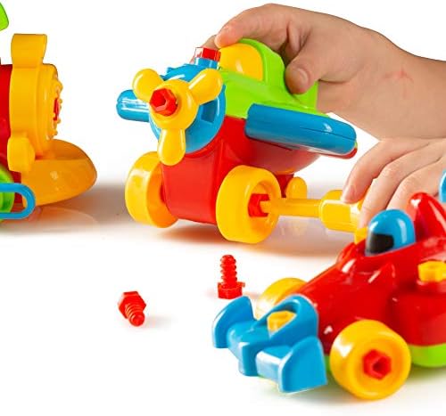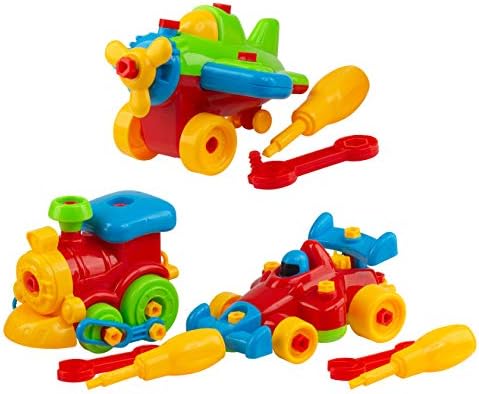 VEHICLE THEMED TAKE APART TOY: Do you wish your kids played more with actual toys than with video games? Get them this set of three take apart toys and they’ll never want to play with your tablet again! The building toy set consists of a take-a-part airplane, a take-a-part train and a take-a-part racing car. The play set is ideal for both boys and girls.