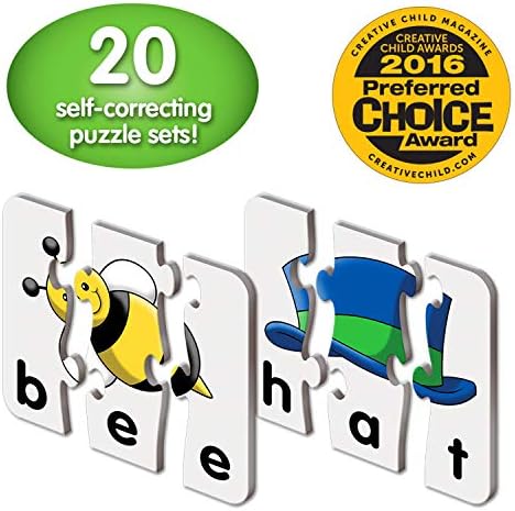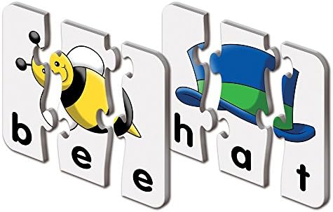 20 THREE-PIECE PUZZLES: This bright collection of puzzles aimed at children ages 4 and up is a perfect introduction to three letter words. The colorful pictures help your child associate words with objects and are designed to teach early reading skills. The cards are a mix of sight words and CVC (consonant, vowel, consonant) words.