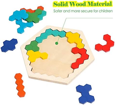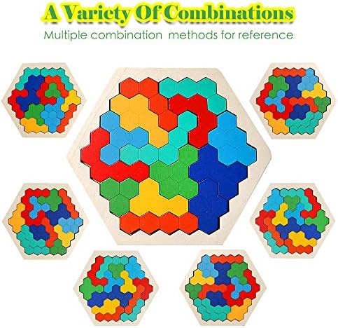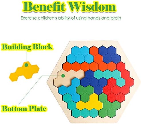 【Challenging Game】USATDD Wooden Hexagon Puzzle is a great building blocks for kids and adults,provide endless possibilities and fun.Put the pieces in and fill in the bottom plate,creat your own solutions.Keeps the kids busy for hours.