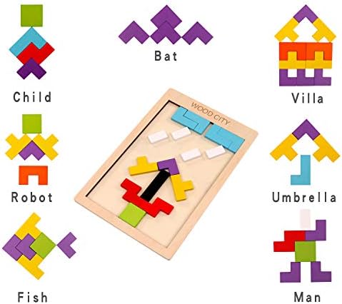 ❤【WAYS OF GAMEPLAY】: You can piece together different combinations with 40 pcs wooden blocks, such as classical tetris pattern,human,robot,umbrella, flower and airplane, eye-catching and beautiful pattern just like pictures shown.Bring you memories and endless joy!