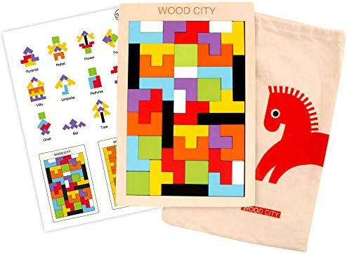 WOOD CITY Wooden Tetris Puzzle toy helps your child develop gross and fine motor skills, hand-eye coordination, attention concentration, counting and analysis skills.