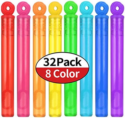 Toys and Games for Pre-Schoolers: 32-Piece 8 Colors Mini Bubble Wands Assortment Party Favors Toys for Kids Child, Christmas Celebration,Thanksgiving New Year, Themed Birthday,Wedding, Bath Time,Summer Outdoor Gifts for Girls Boys