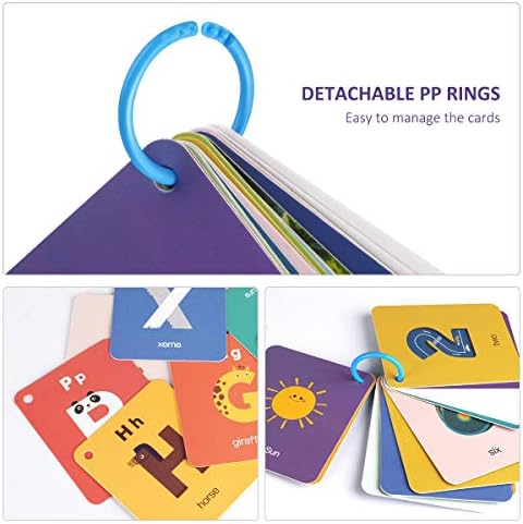 【CONVENIENT AND ORGANIZED】This set of flash cards includes 4 rings make it ideal for travel and car activity for babies, infants and toddlers. Your childern can easily organize and sort them keeping them neat and tidy in one place.