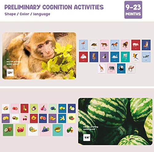 【SAFE MATERIALS FOR YOUR BABY’S HEALTH】The educational toys print with environmentally friendly soy ink, waterproof and easy to clean. Covered with double-sided film, the matte surface has anti-glare treatment, which won’t hurt babies’ eyes. There is no-smell of the flash cards, and thicken glossy cardboard and rounded corner design is safe for your kids to grasp, no need to worry about breaking or bending.