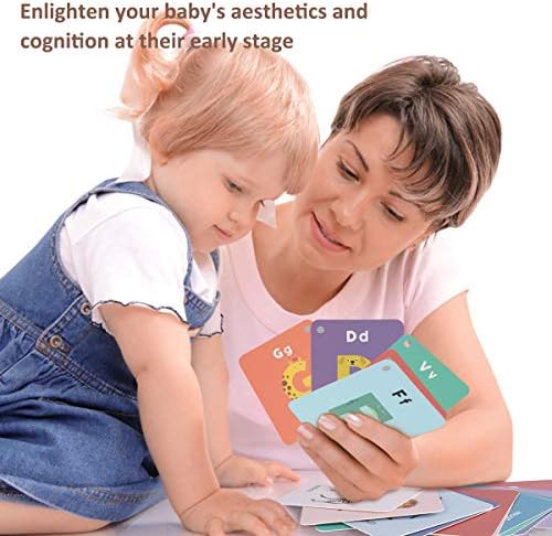 【ACTIVATE YOUR KIDS BRAIN DEVELOPMENT】After 9 months, the baby can understand the real objects and simple pictograms clearly, enlighten the baby’s aesthetic and cognition early. Bright and vibrant colors cards with cute patterns on each page cultivate instantaneous memory of right brain and strengthen eye muscles, help build visual and spatial awareness. Our flash card was also designed to improves baby’s cognition and discernment, deepen understanding of the letters, words and numbers.