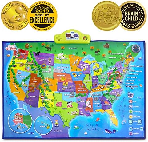 Family Choice, Mom’s Choice Gold Metal & Tillywig Brain Child Award Winner 2018! Creative Child Seal of Excellence Award Winner 2019! The most popular interactive touch activated talking USA map for kids.