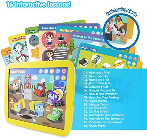 Comes with 8 durable plastic (PP) learning cards (16 lesson pages) and volume control. Take learning activities on the go; perfect for long car or plane rides. Great gift idea for preschoolers; boys and girls.