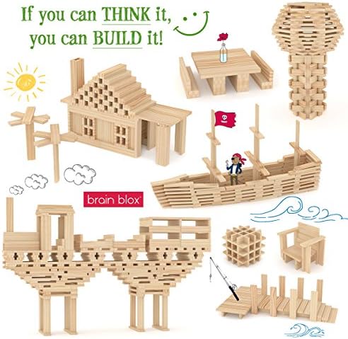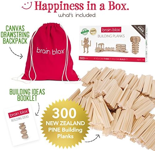 Brain Blox building planks are All-natural, Educational, STEM-inspired and do not require magnets or connectors of any kind: only Balance, Friction & your AMAZING Brain. If kids can THINK it, they can BUILD it! This construction toy has no limits! Build a castle, ship, tower, robot, flower, house, train, you name it! Simply stack, balance & be creative. Stacking blocks are perfect for family time, independent play, team competitions, STEM Club, school, or on the go! This educational toy building set is great through all stages of brain development: from preschoolers all the way into adulthood. Includes wooden blocks, a Building Ideas Booklet and a Drawstring Backpack for easy storage or convenience on the go!