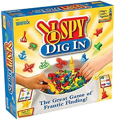 Are you ready to play? Then dive right in and dig away Race the clock it’s not so hard! Dig out 6 objects place on your card i spy dig in is the great game of frantic finding! Kids practice literacy coordination and social skills as they race to match the images on their cards with objects from the bowl
