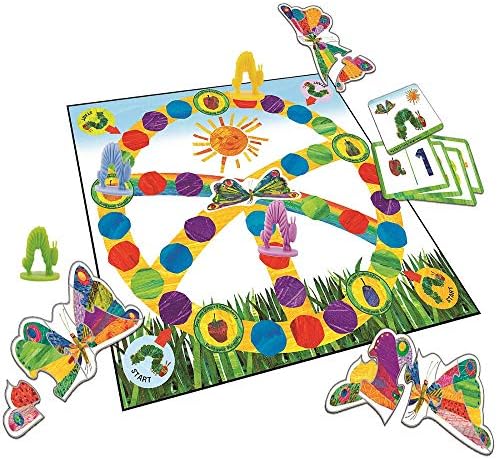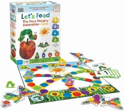 The very hungry caterpillar is having an anniversary, and it’s a big one! Celebrate the beloved book’s 50th anniversary with the let’s feed the very hungry caterpillar game. Children move colorful, 3D sculpted caterpillars from fruit to fruit, collecting a unique butterfly puzzle piece Each time they stop to “eat.” the first player to collect all five puzzle pieces and build a beautiful butterfly wins the game! Children practice decision-making by moving any direction on the board. They mix and match beautiful butterfly illustrations to create a different work of art Every game. No reading required.