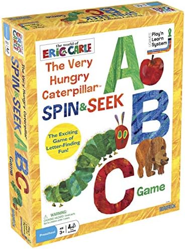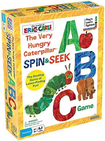 The Very Hungry Caterpillar is having an anniversary, and it’s a big one! Celebrate the beloved book’s 50th anniversary with The Very Hungry Caterpillar Spin & Seek ABC Game. Do you know your ABCs? In the Spin & Seek ABC Game, players spin the spinner and seek for letter cards that match their space. The letters and corresponding image cards are inspired by The World of Eric Carle. This game introduces children to the alphabet by teaching them the difference between big and little letters. Counting skills are reinforced as players move around the board. University Games’ Briarpatch division is America’s leading preschool game and puzzle line, with 25 years of innovative and exceptional learning games. The World of Eric Carle nurtures a child’s love of literature and learning, encouraging imaginative play and exploration. Trusted by parents, teachers and librarians, and beloved by children worldwide for generations, The Very Hungry Caterpillar and other timeless storybooks come to life in colorfully creative products designed to inspire very hungry young minds.
