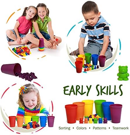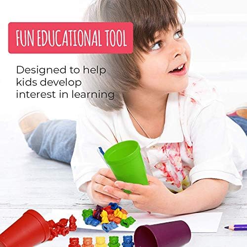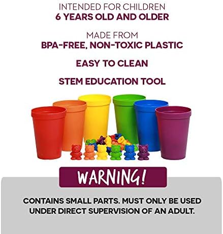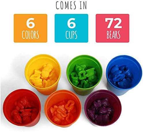 COMES IN 6 COLORS, CUPS, AND 72 BEARS: Carrying bag is included as well for storage. At 1″ tall, each bear is non-toxic, BPA free, lead free and phthalates free. Also included in an eBook with 20 educational activity sheets. Warning – the bears are not intended for use with a toddler (boys, girls, kids) who place objects in their mouth. Close supervision is highly recommended for children ages 3 or younger