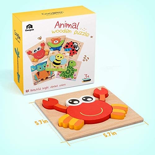 Coogam 6 Pack Wooden Animal Shape Color Montessori Early Learning Educational Jigsaw Puzzle Toy