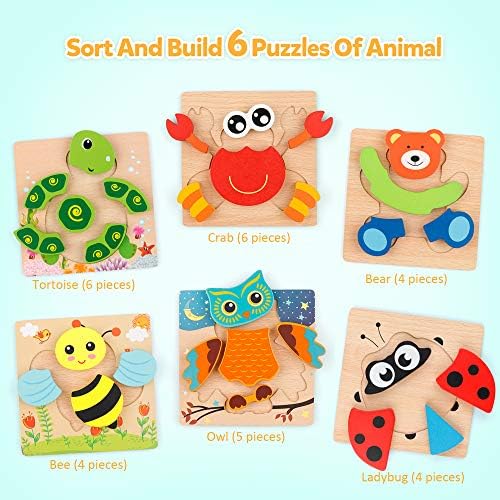 RECOGNIZE ANIMALS: The toy set includes 6 Pack Animal Shape Puzzle, the colorful colors and cute animals design attract your children to play. Through wooden jigsaw puzzles, Beautiful bright vibrant colors, it is easier for kids to remember the outline of the animal. And in the process of enjoying the game, the memory will be more profound.