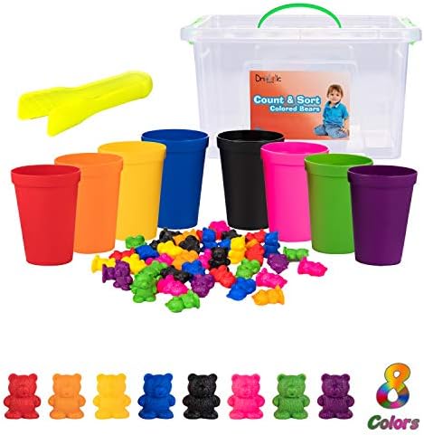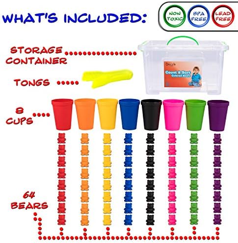 FUN AND EDUCATIONAL 🎨 64 Multi colored bears, each color has a matching cup, kids can count, sort, stack, & match with various different ways to play