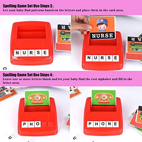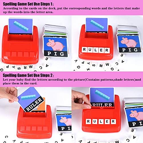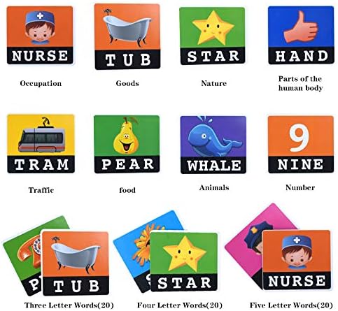 🍄 【IMPROVE MOTOR SKILLS】Our alphabet letter word spelling game is thick, durable cardboard construction makes cards easy to grasp and use, and also a great way of improving hand-eye coordination and encouraging the development of essential motor skills.Fun color thing cards assist parents in teaching short word of sight. A practical and useful spell words board game for your children entertainment and elementary education