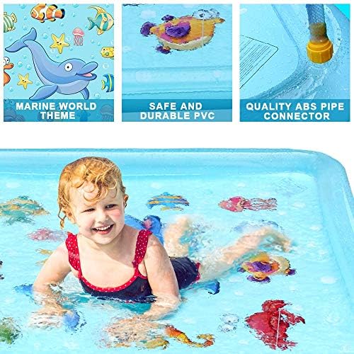 UNIQUE DESIGN & FUN – Lay or sit in the big ocean and Surrounded by different cute fishes. Children and pets will be thrilled to play in the sprinkle and spray. Cherish the moments and take awesome pictures of your little ones. This summer toy will create a happy little world for your children.