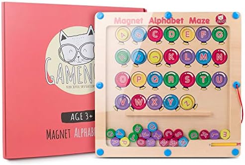 Toys and Games for Pre-Schoolers: Gamenote Magnetic Alphabet Maze Board, Wooden Matching Letter Game Montessori Toys for Preschool Kingdergarten – Fine Motor Skills Toys ABC Recognition Color Sorting Puzzle