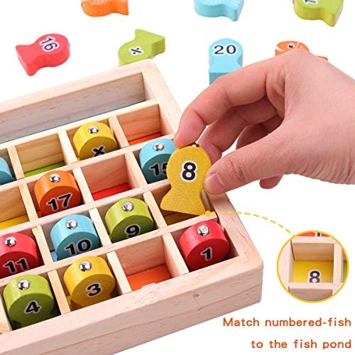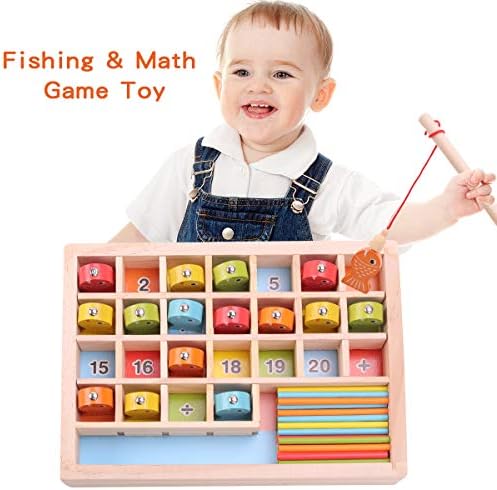 Multiple Options to Play: Find the fish that match the color and number, using the wooden fishing rod, magnets are attached to the mouth of the fish that lets them pick up the fish. There are two rods so that kids vs kids or parent vs kids interaction and competition are all available