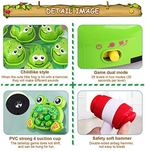 🐸100% Satisfaction Guarantee:Frog toy made of premium ABS.Soft hammers keep your kids can’t hurt anyone or break anything,but it works well for the game.The sucker on the bottom that permits the hammering of the top without slipping.Pls contact with us if you have any problem.