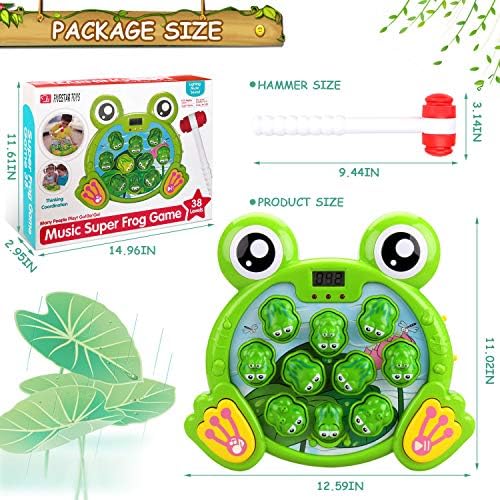 🐸Great Fun Gift:Whack a frog game for toddlers is an early developmental toys for 2 3 4 5 6 7 8 Year Old boys,girls & Kids Gifts.This game can aid language learning and musical recognition and encourages toddlers to cooperate and take turns to play whack a frog game,develop communication skills.