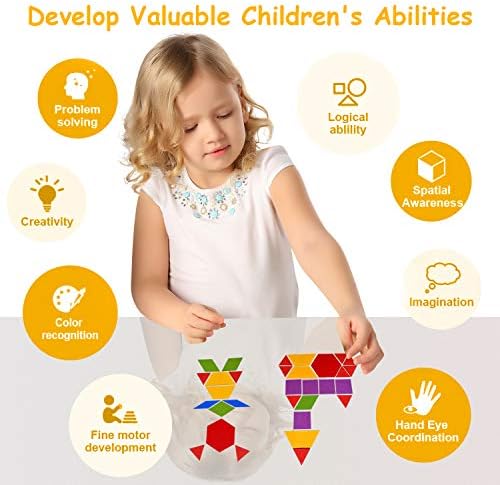Creative Pattern Blocks for Kindergarten: The multiple shape puzzles help children build an understanding of geometric & colors, sorting & stacking, which will enable them to easily grasp complex geometric concepts. Package size: 9.6*8.4*1.6 in (24.5*21.3*4cm).(Manual measurement,0.2 cm errors allowed)