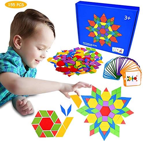 Montessori Toys for Toddlers: Comes with 155 pcs puzzle blocks in different sturdy shapes and colors & 24 pattern design cards that can provide some ideas. While kids discover different ways to combine the shapes, they will create more things with their imaginations. (For 3 years old and up)