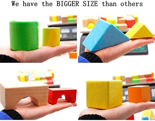 A set of wooden blocks provides an opportunity for a child to pass the hours constructing towers, animals, castles, towns, and more! The blocks size big enough, do not worry Choking Hazard